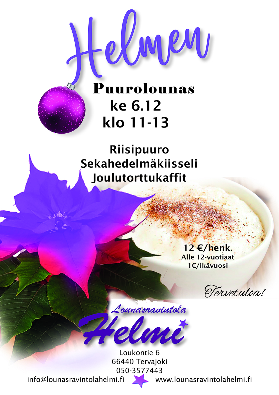 Ke 13.12 Jouluruokaa aamusta iltaan klo 11-20